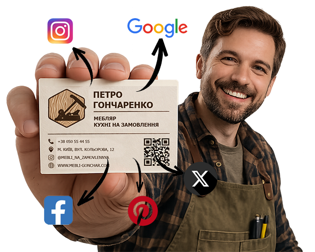 If you have a paper business card, we can make a mini-site out of it and distribute it on social networks. This will attract additional customers from the Internet.